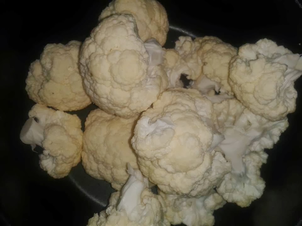 -Cogemos la coliflor le quitamos las hojas verdes y le cortamos el centro. Ya la tenemos lista empezamos a cortar los arbolitos al tamaño deseado. Lavamos los arbolitos de coliflor y los ponemos en una cacerola con agua que cubra toda por encima. Cocemos a fuego máximo de 10 a 15 min. Sal al gusto.