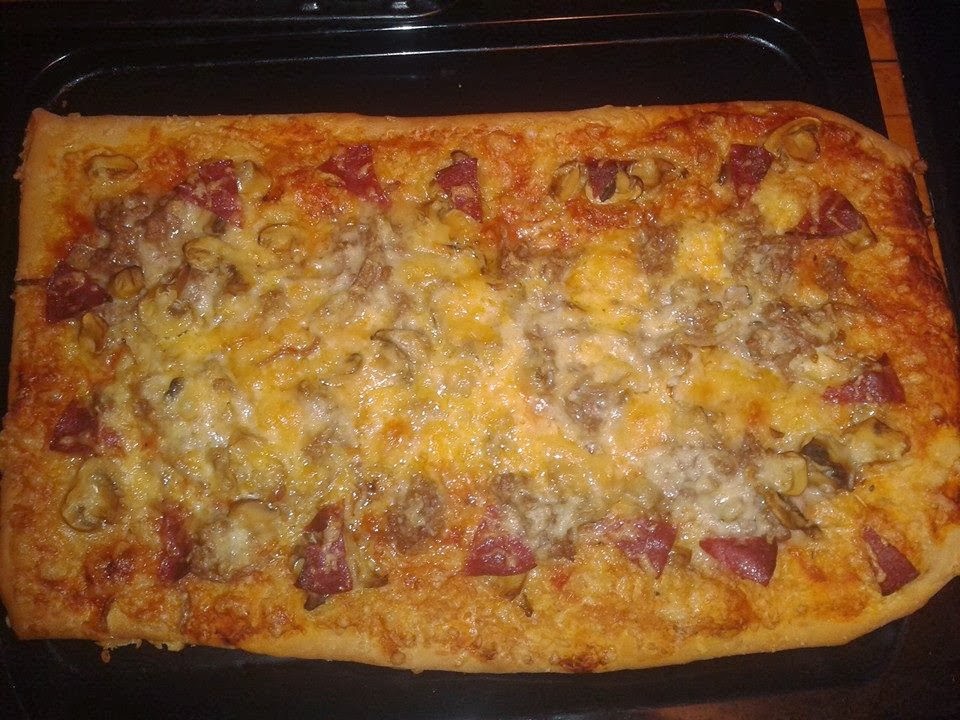 Hola amig@s, hoy e querido atreverme a hacer una pizza a ver que tal salia y bueno aqui su resultado, la masa a quedado muy bien para mi gusto engordo demasiado, me gustan más finas. Con el tiempo sacaré otros tipos de masa con otros ingredientes pero sin duda esta esta buena.