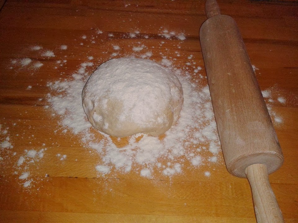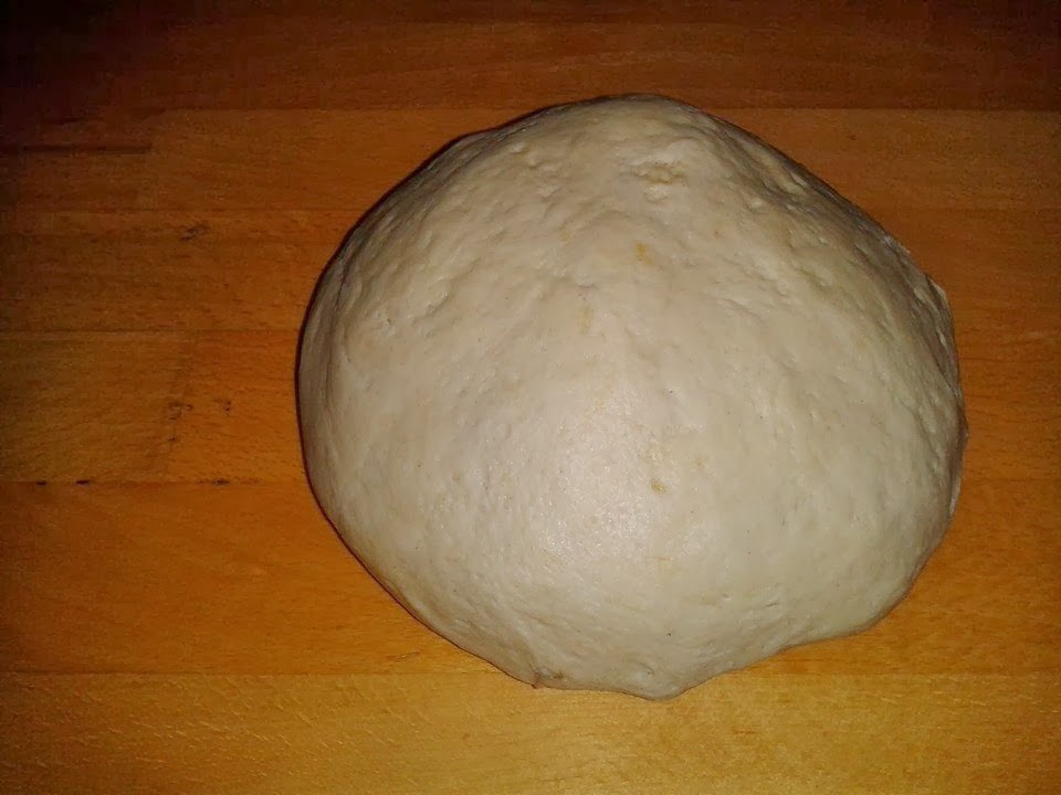 -Pasado el tiempo de fermentación sacamos la masa del recipiente y la colocamos en nuestra mesa de trabajo, espolvoreando un poco de harina en la mesa anteriormente.