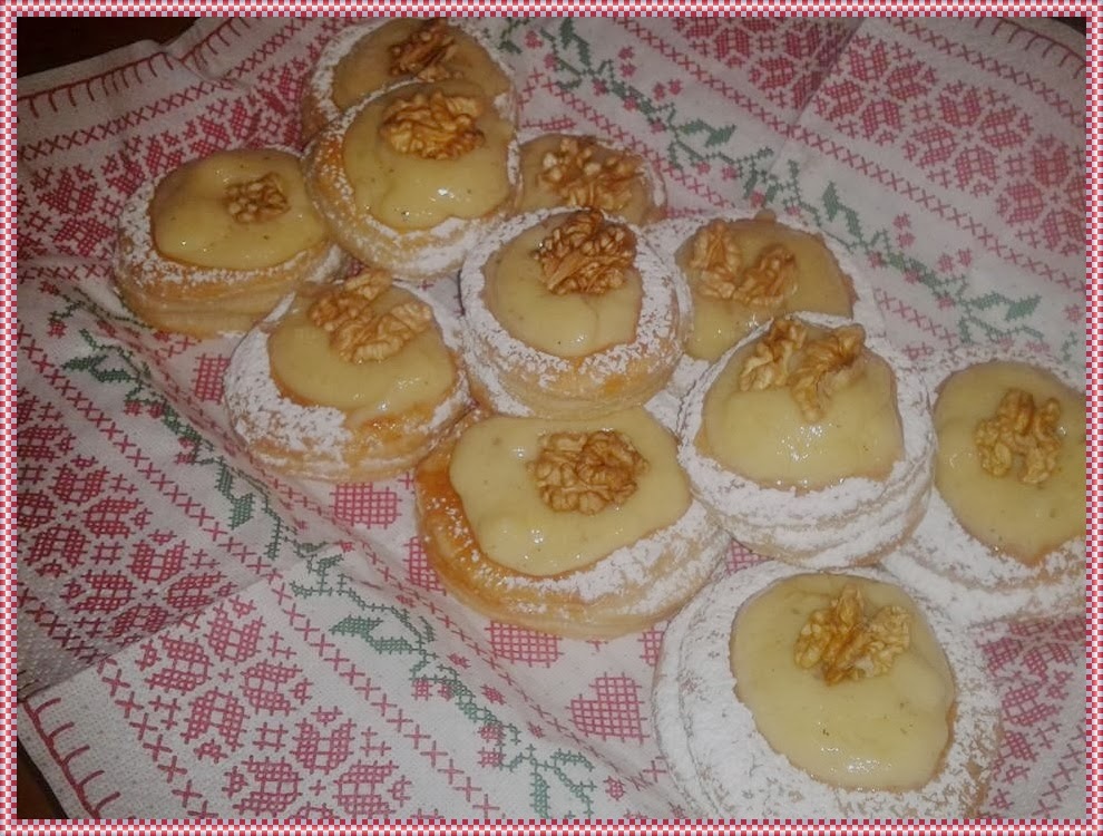 -Listas para rellenar cogemos las natillas si queréis la receta pinchar en este enlace de natillas caseras, rellenamos todo el centro de nuestro vasito de hojaldre.