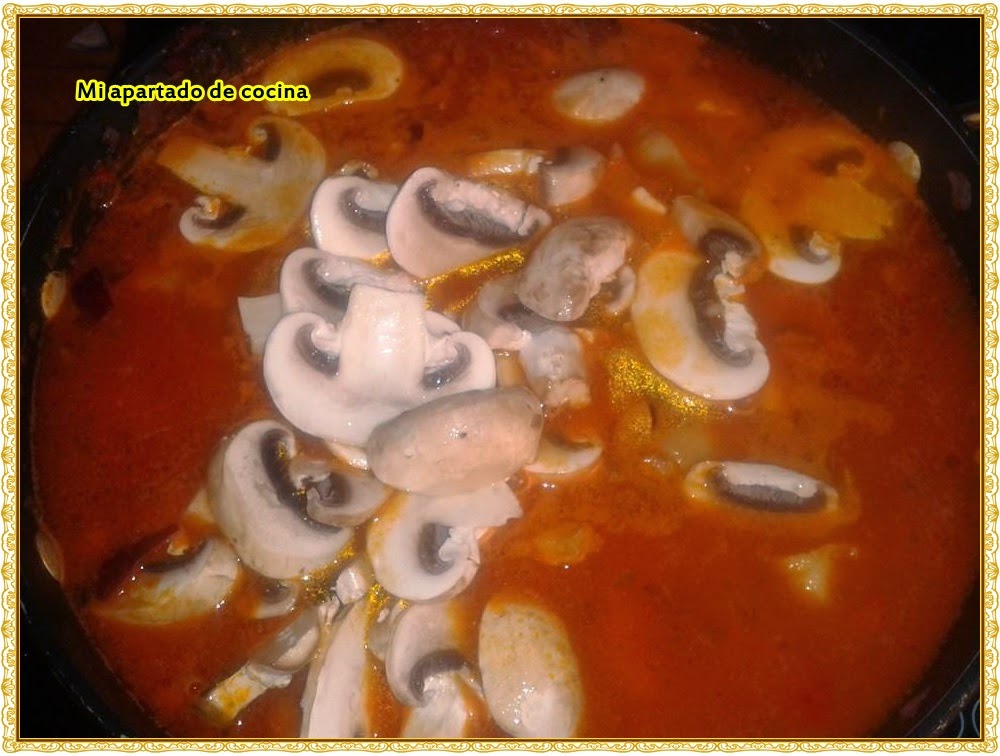 - Ya a pasado el tiempo ahora ponemos 3 vasos de agua y añadimos los champiñones y dejamos hervir durante 15 minutos.