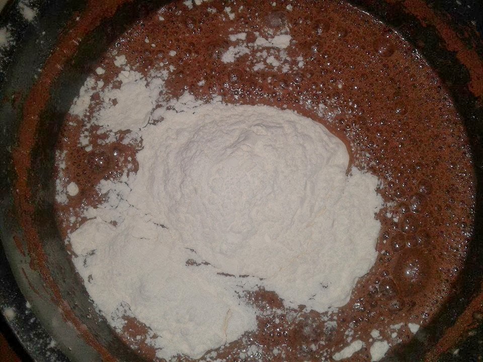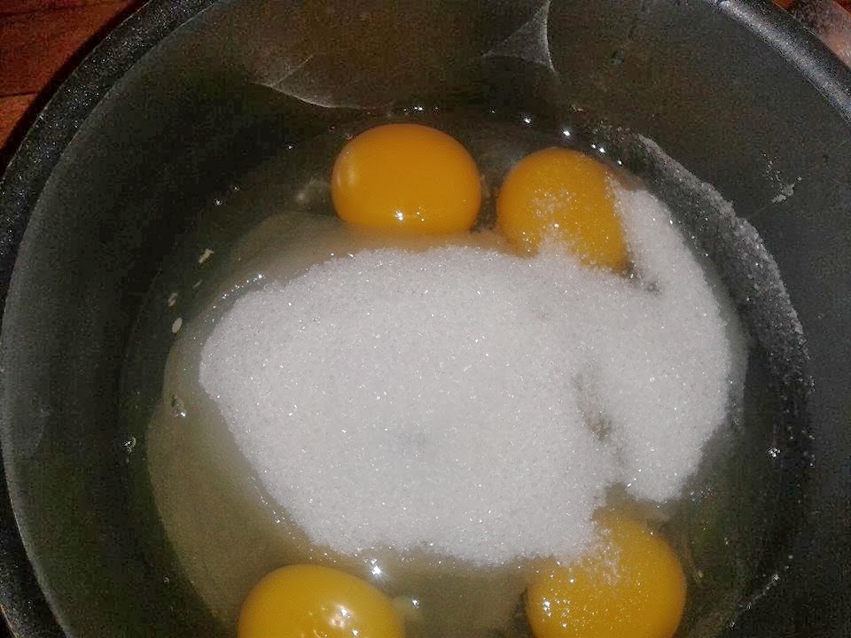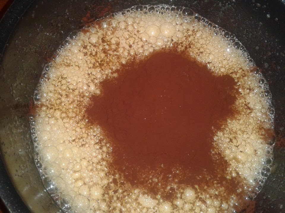 - Batimos los huevos y el azúcar, el siguiente paso seria añadir las dos cucharadas de cacao en polvo