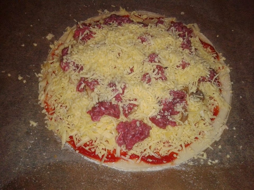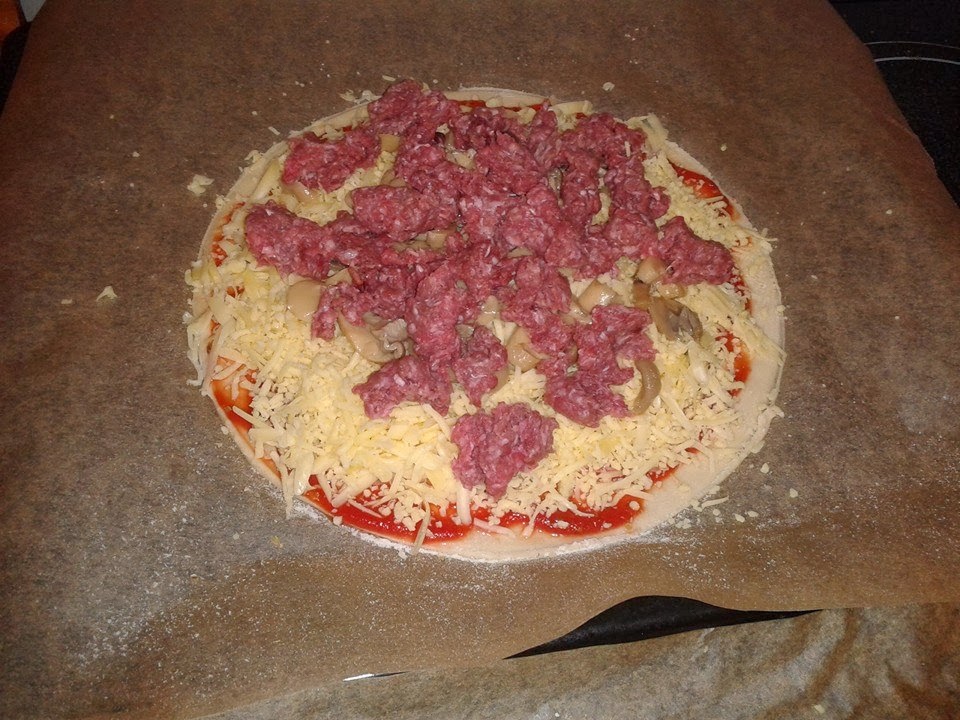 Pizza clásica de carne y champiñones