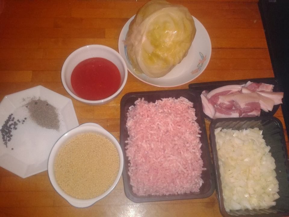 Hola amig@s. Antes de nada quiero comentar que esta receta esta modificada debido a que realmente los rollitos de repollo se rellenan con carne y arroz pero yo como tengo problemas alérgicos con el arroz pues opte por usar piombi son bolitas pequeñas de pasta, si no sabéis a que me refiero podéis mirar en google imágenes, fue lo mas similar al arroz que encontré por su tamaño. Se puede preparar de las dos maneras quedara igual de rico. Este es un plato típico en Rumanía la gente de allí lo come a diario y sobre todo en celebraciones es muy original y bueno quería compartirlo con vosotros a ver que os parece.