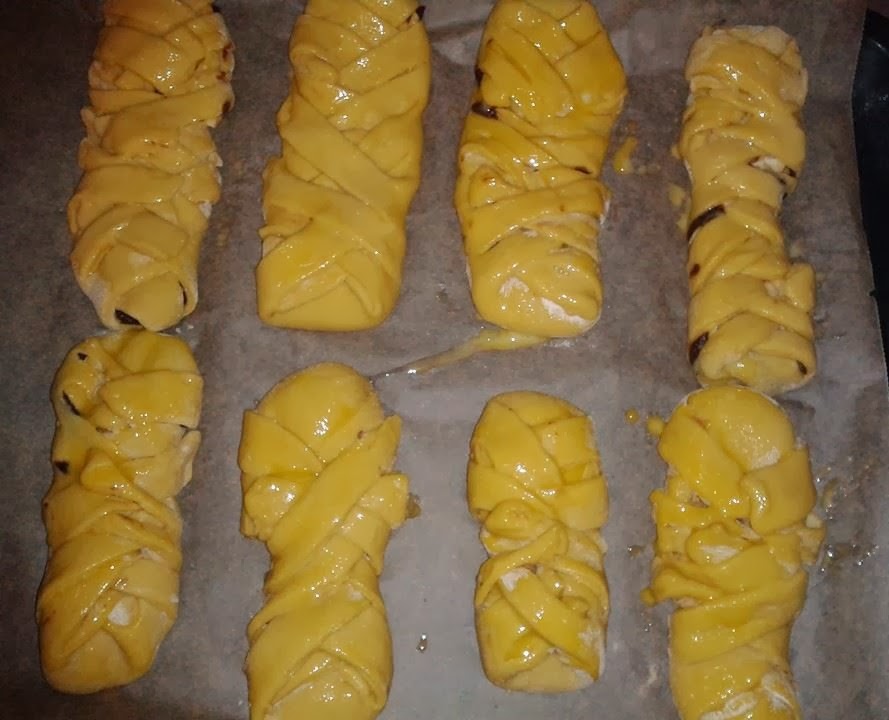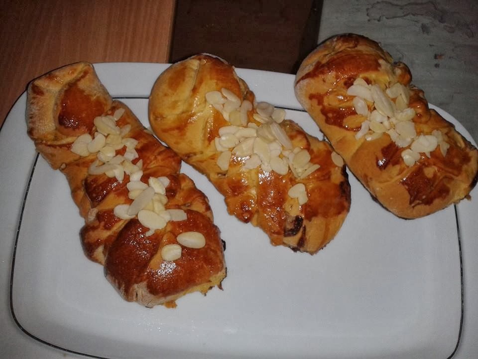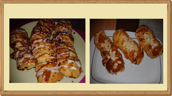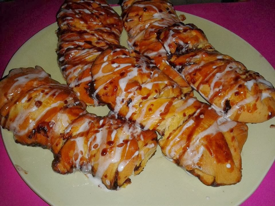 Introducción: Anteriormente prepare una receta de masa de bollos y ahora vamos a rellenarlos espero que os gusten estas ideas. Trenzas rellenas de chocolate recubiertas de chocolate y azúcar glas. Trenzas rellenas de miel con nueces y recubiertas de almendras.