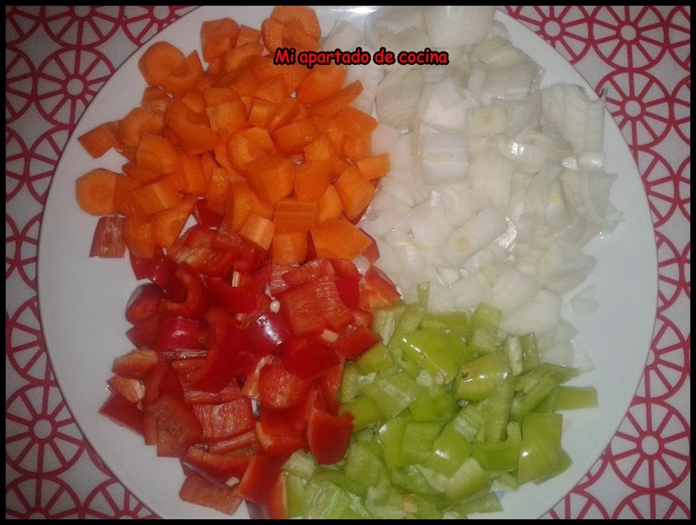 - Picamos el queso y las salchichas en cuadraditos pequeños.