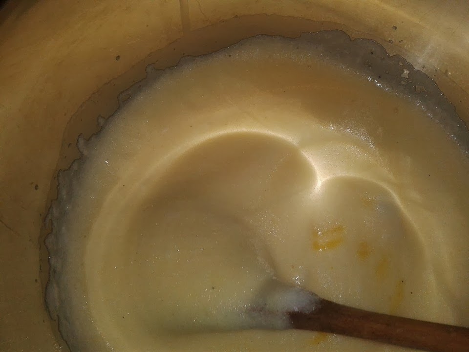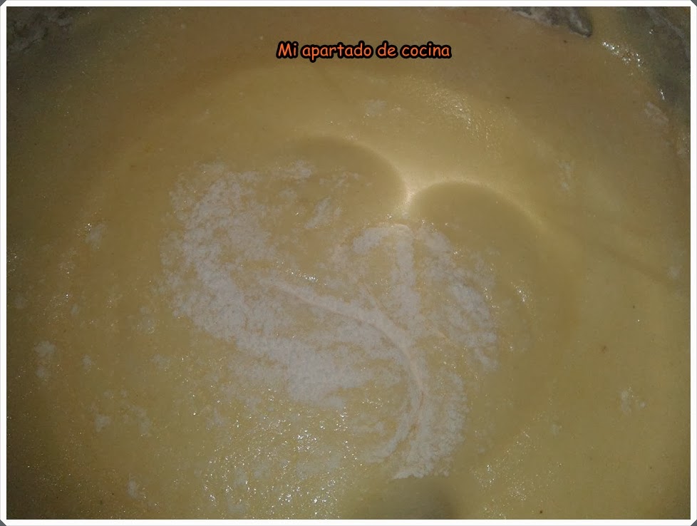 - Cuando hayamos acabado este paso empezamos con la harina, de igual manera introducimos lentamente sin dejar de mover de adentro hacia afuera en movimientos circulares. Pero la harina tamizada, yo la fui incluyendo poco a poco en la mezcla tamizandola directamente con un colador.