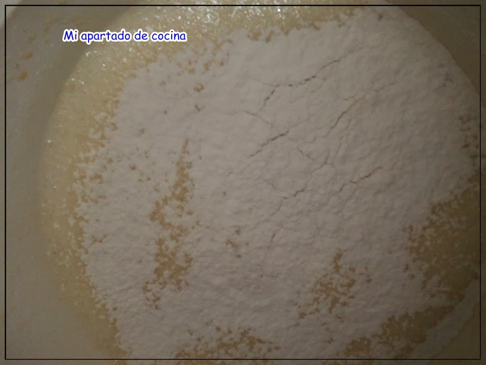 - Ahora y muy importante echamos la harina tamizada mientras seguimos batiendo de poco a poco.
