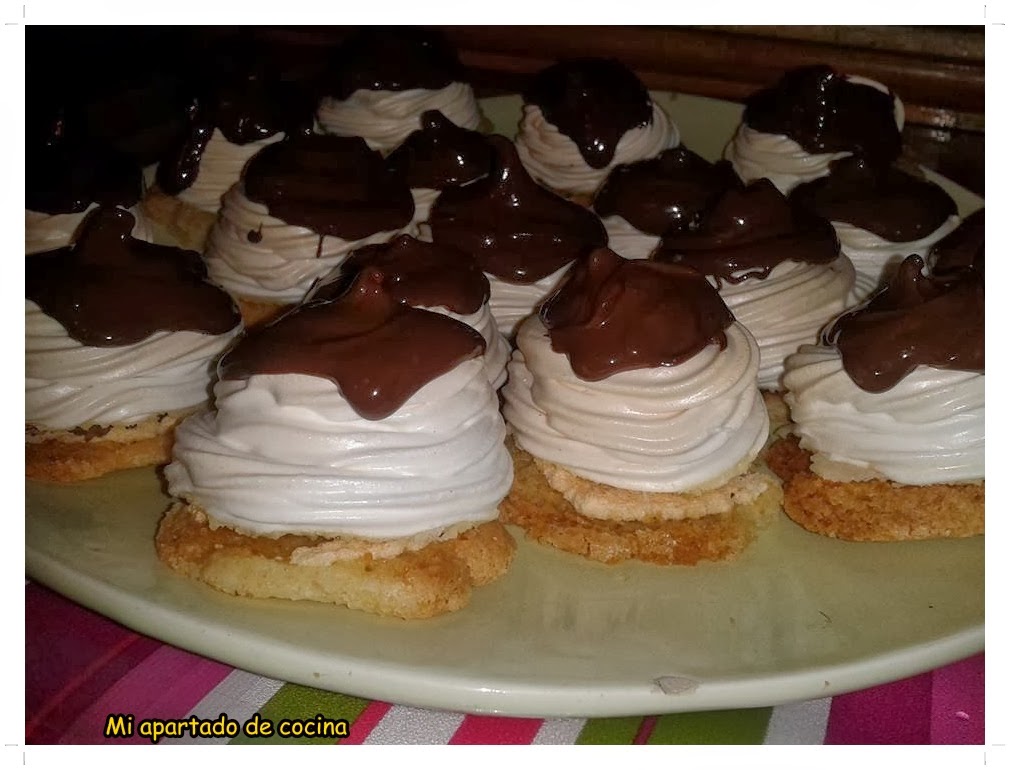 Introdución: Hola amig@s, hoy hemos querido ponemos un reto personal en dulces y probando hemos logrado estos merengues con galleta casera de base y recubiertos con chocolate por encima. El merengue junto con el chocolate es el dulce más esperado y deseado por much@s y juntos forman una deliciosa composición. Espero que os encante esta receta totalmente casera y que la compartáis con vuestros amig@s.