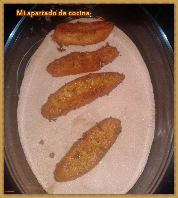 - Es importante dejarlas que doren bastante para que tengan un mejor sabor. Por otro lado preparamos el azúcar restante y la canela mezclados.