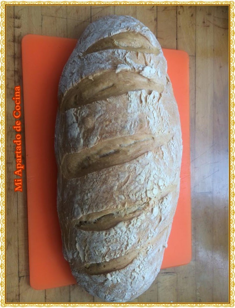 Pan de casa, lo pintáis con un huevo batido y le espolvoreáis harina por encima