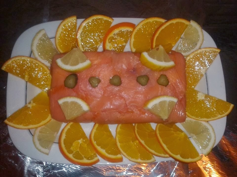 Aquí hice un enrollado para dos personas, con pechuga de pavo, tomate