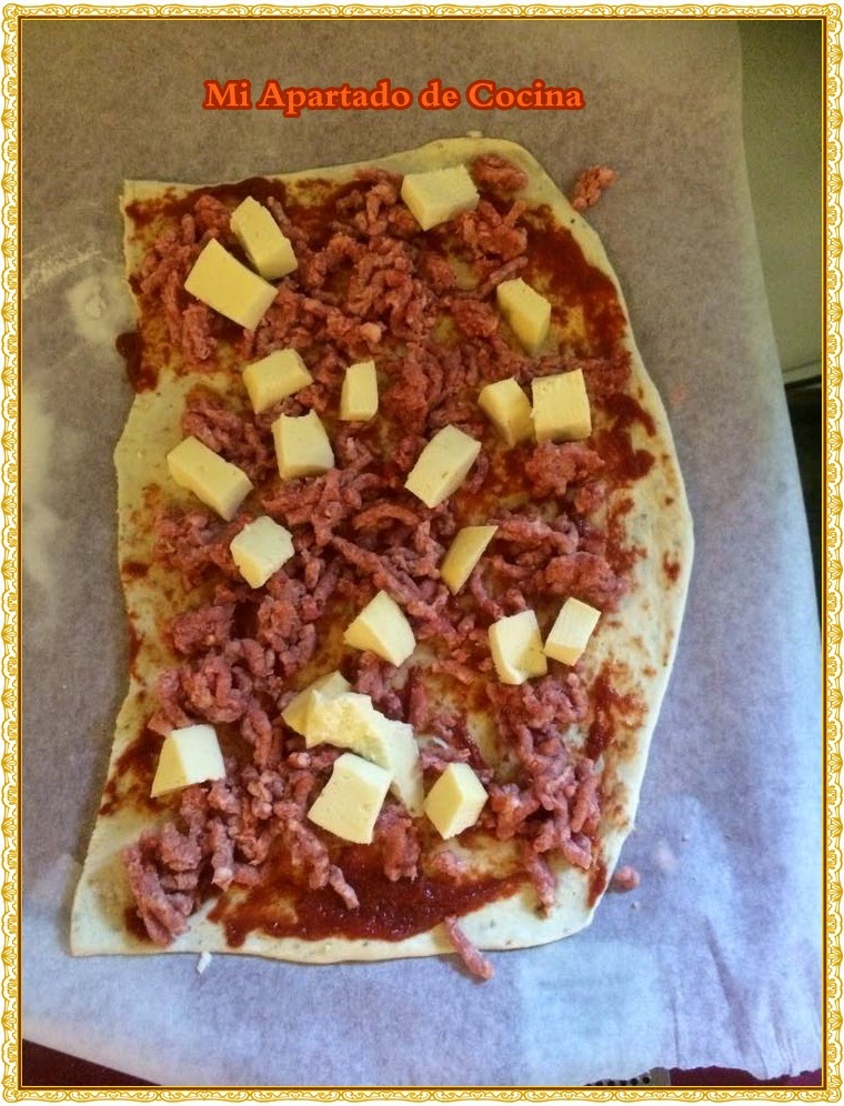Aquí hice dos versiones, una empanada y otro enrollado, esta vez le eché carne picada,