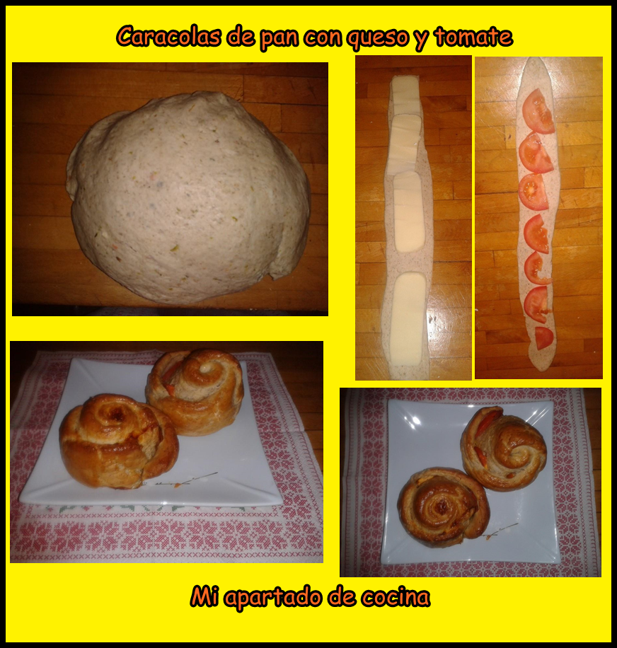 Caracolas de pan rellenas de queso y tomate Introducción: Hola amig@s, e querido preparar un pan diferente, de una de las masa...