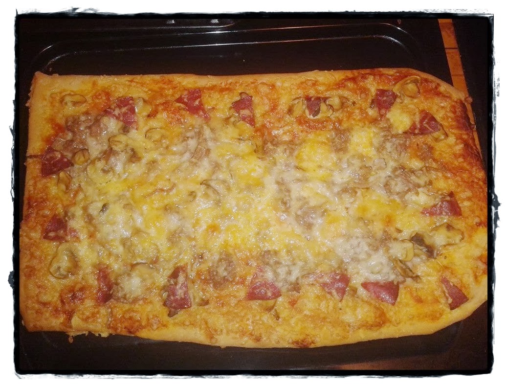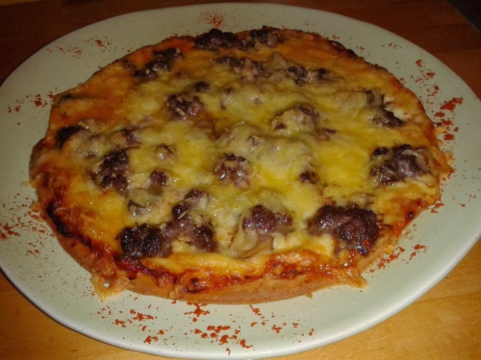 Pizza clásica de carne y champiñones