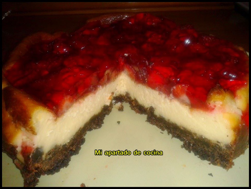 Tarta de queso con galletas oreo, fresas y gelatina