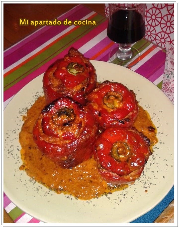 • Pimientos rellenos de carne y pasta con salsa a la pimienta